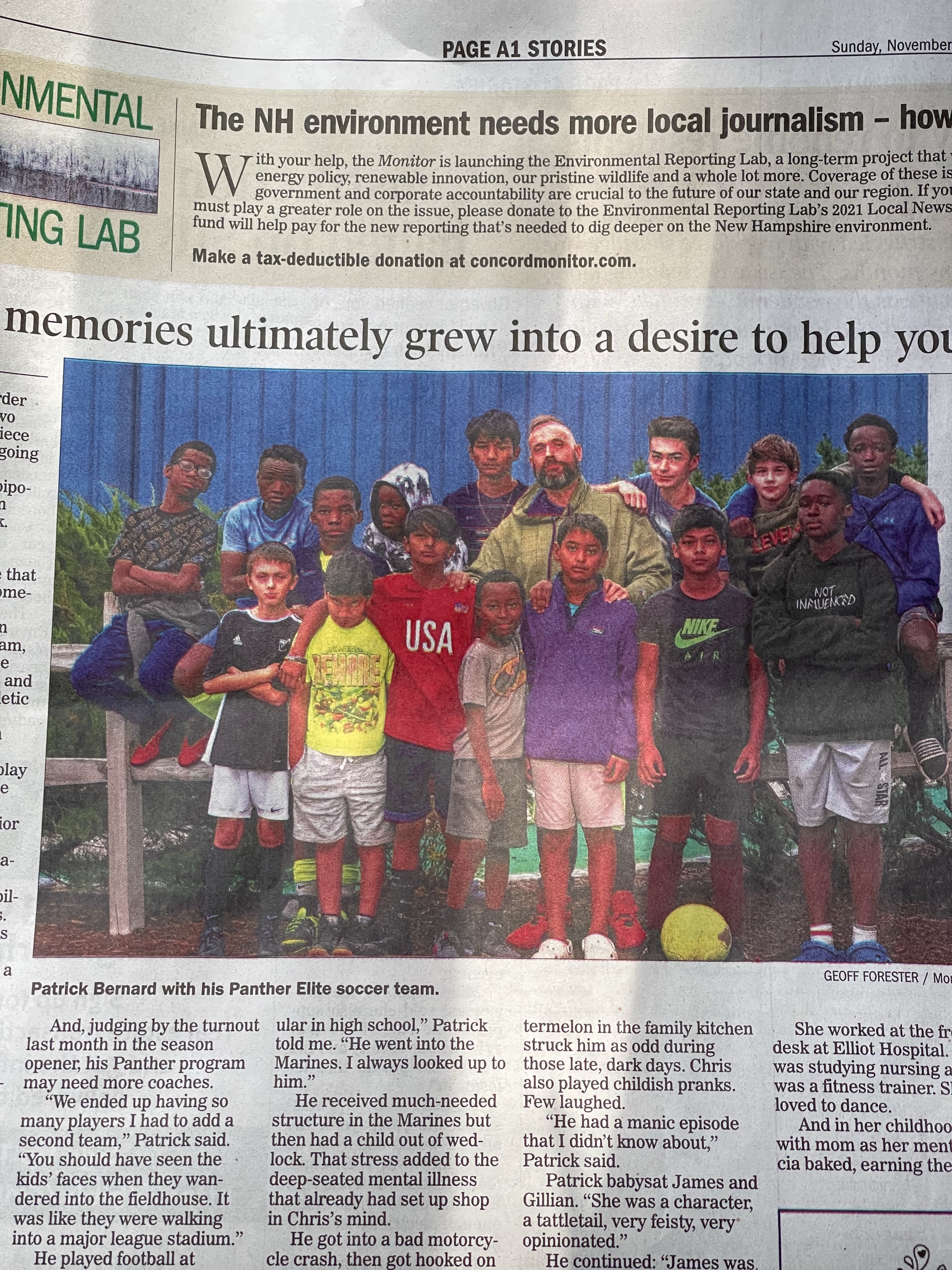 So when I last left you readers I was pondering an indoor soccer team to honor my lost family members- and less than a month later I have almost twenty players signed up and two teams under the Panther Elite banner. We also were just featured on the front page of the Sunday Concord Monitor newspaper- so yeah a lot of big things happening this past month.