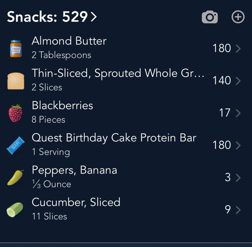 I usually have a protein shake for breakfast. Lunch usually a salad with a lean protein that’s usually chicken- but sometimes salmon, or lamb(on rare occasions).Dinner I load up on vegetables, and a protein. Other times a vegetable soup with a protein.Dave’s Killer Bread is amazing. Packed with all heartiness and the perfect pair for almond butter. Also I am a huge fan of The Quest brand. They have the best protein cookies, and bars.